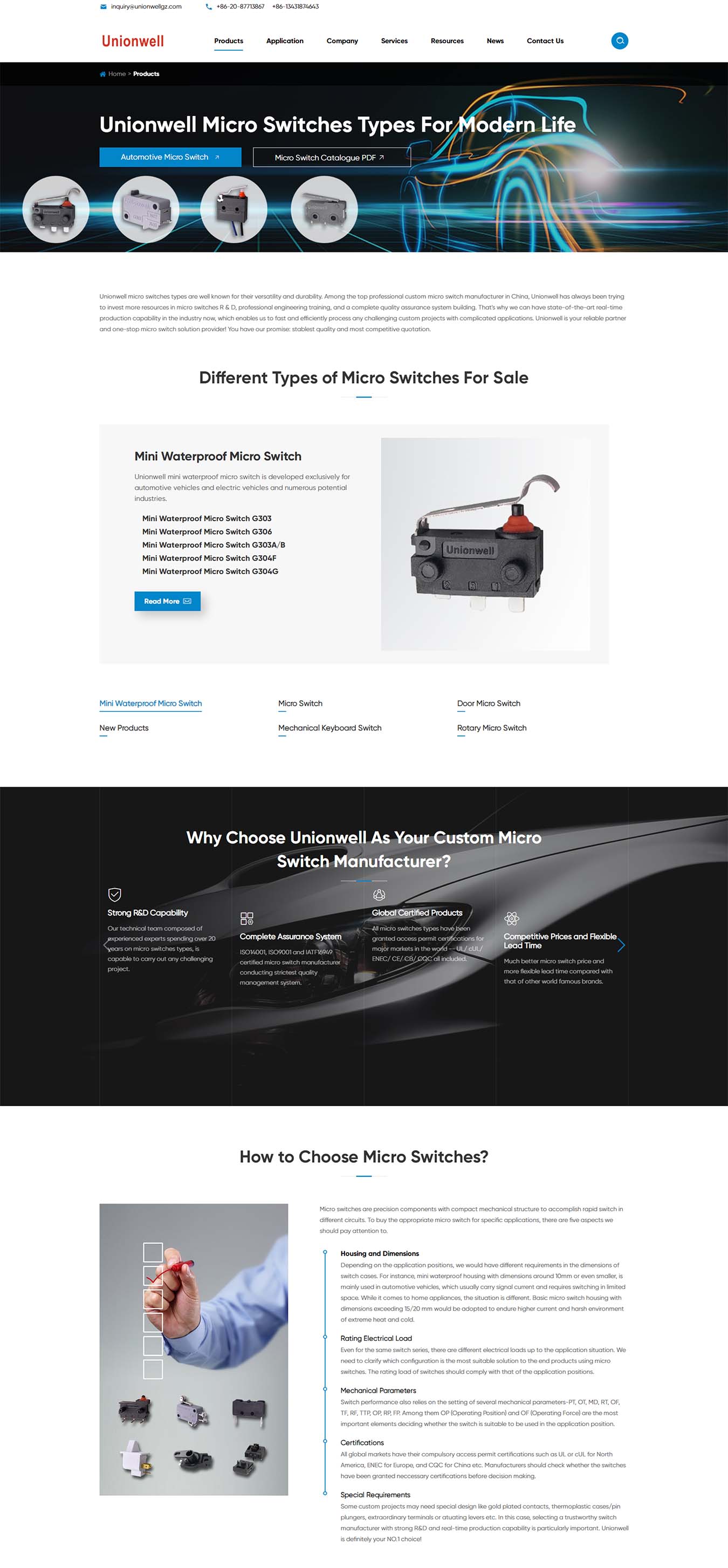Unionwell micro switches types are well known for their versatility and durability. Among the top professional custom micro switch manufacturer in China, Unionwell has always been trying to invest more resources in micro switches R D, professional engineering training, and a complete quality assurance system building. That's why we can have state-of-the-art real-time production capability in the