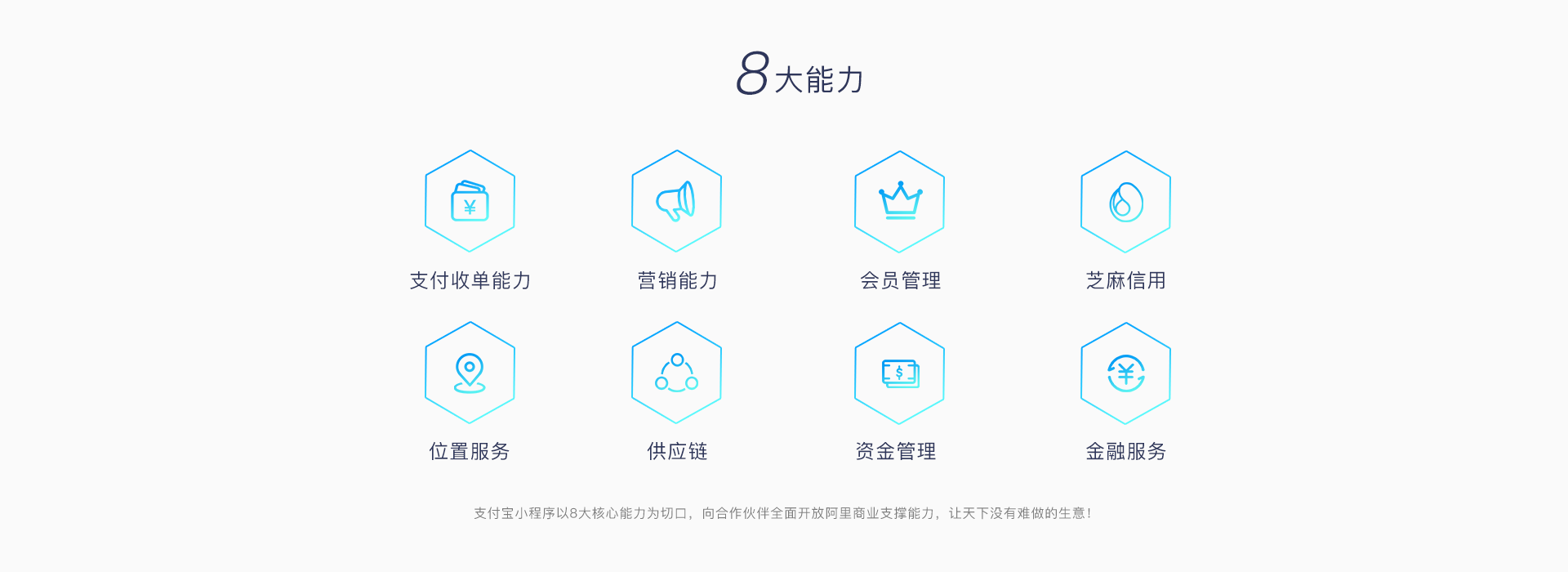 支付寶小程序正逐步打通阿里生態,開發者可一次開發,阿里各大APP多端運行,通過小程序連接阿里經濟體