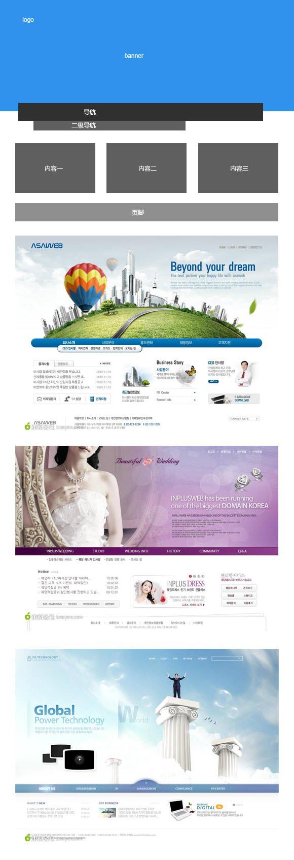這種布局在企業站中較難看到,用的不多,banner區域相對較大,可以作為一種布局的選擇。