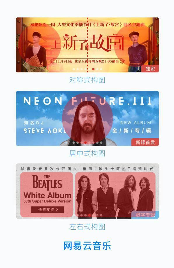 今天重點為大家總結(jié)了兩點,一是 banner 的拆分剖析,以便我們對設(shè)計知識體系的建立和訓(xùn)練,二是設(shè)計工作中常用版式的分析和實例,希望能對大家平日的設(shè)計工作與學(xué)習(xí)有幫助。