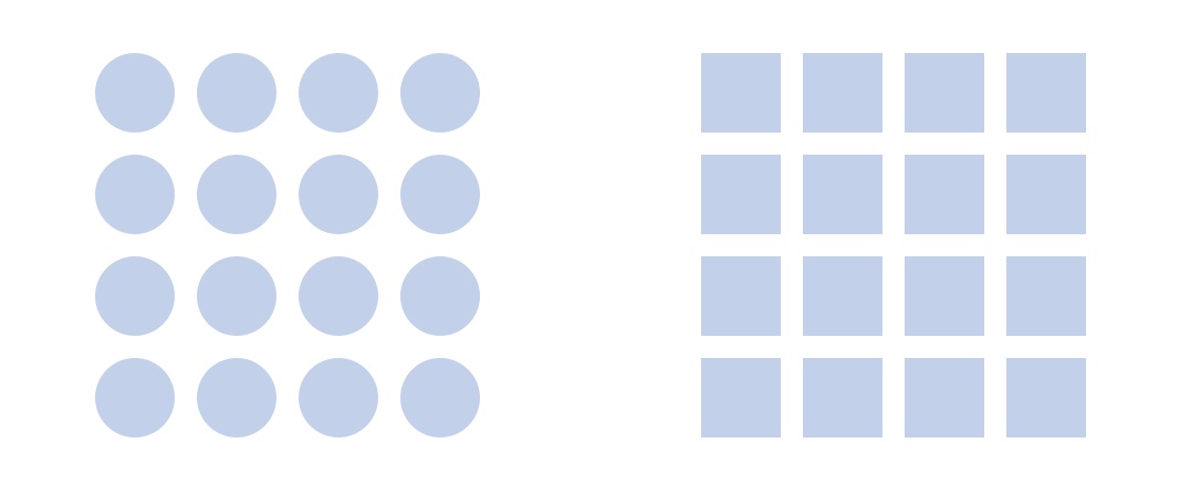 這里有個相通點(diǎn),即虛擬圖形依附于視覺而存在。人眼在接收圖形信息時,對圓角矩形的認(rèn)知會優(yōu)于直角矩形。因?yàn)槿搜劢Y(jié)構(gòu)中辨識力更強(qiáng)的部位,會優(yōu)先識別圖形的視覺中心。而圓角與直角矩形的區(qū)別就在于內(nèi)容速度的識別差異。