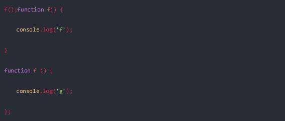 我們看到,在預(yù)解釋階段函數(shù)聲明的f是被指向了正確的函數(shù)得以執(zhí)行,而函數(shù)表達(dá)式g被賦予undefined,undefined無法被當(dāng)作函數(shù)執(zhí)行因此報(bào)錯(cuò)g is not a function.