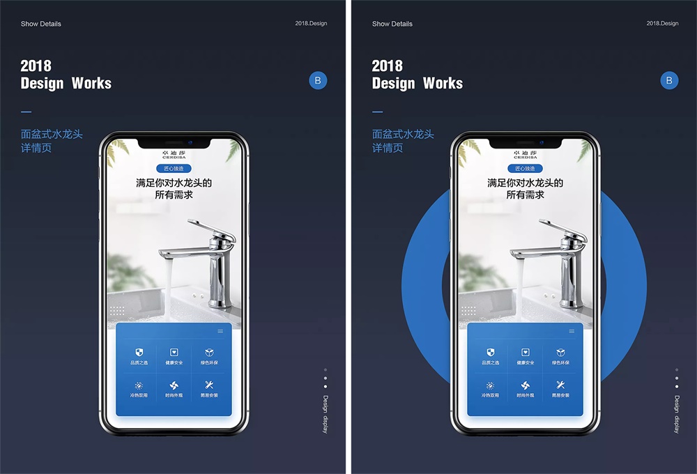 同樣是產品+文案,上下的差距一目了然,之所以會呈現出這樣的視覺感受在于對留白的運用,也就是視覺比例關系,當整體比例關系運用得當時,哪怕只是產品和文案,不添加任何輔助元素和效果,也不會給我們「空」的視覺感受;各個元素的視覺比例不恰當也會是造成畫面「空」的原因之一。