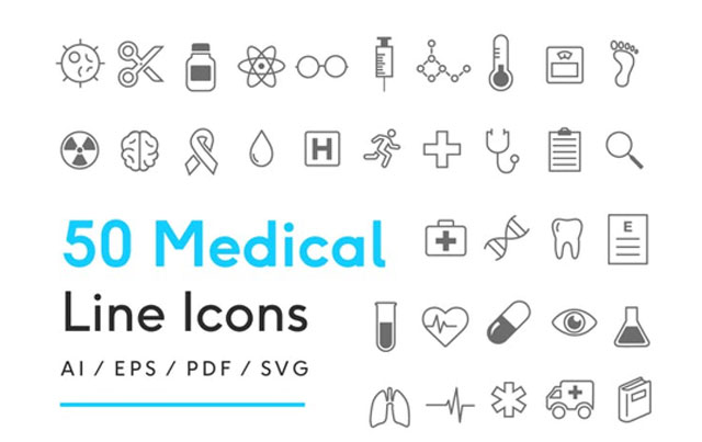 醫(yī)學(xué)領(lǐng)域就是一個(gè)很好的例子。圖中醫(yī)學(xué)行業(yè)線性圖標(biāo)包括50個(gè)完全可編輯的圖標(biāo),它們的格式多種多樣。每一張圖片都以簡單明了的方式展示了一個(gè)特定行業(yè)的概念。還可以看一看更多特定行業(yè)的圖標(biāo)系列: