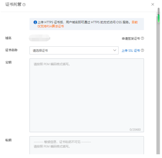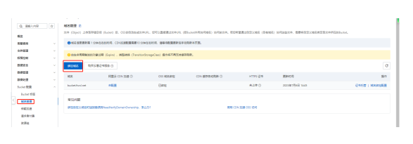 如果需要安裝SSL證書的話,可以重新到OOS配置中的域名管理中,進行證書托管,如下圖所示: