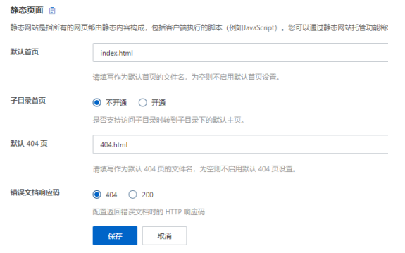 默認首頁就填寫我們上傳的index.html,默認404頁就填寫404.html,我們可以上傳一個404文件,當網站打開錯誤的頁面時,就會顯示這個404頁面,填寫后如下圖所示: